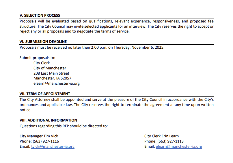 The City of Manchester works with Regional Planning Affiliation 8 (referred to as the RPA) to seek competitive proposals that will focus on evaluating alternative intersection configurations to enhance safety at various intersections in the City of DeWitt and the City of Manchester.